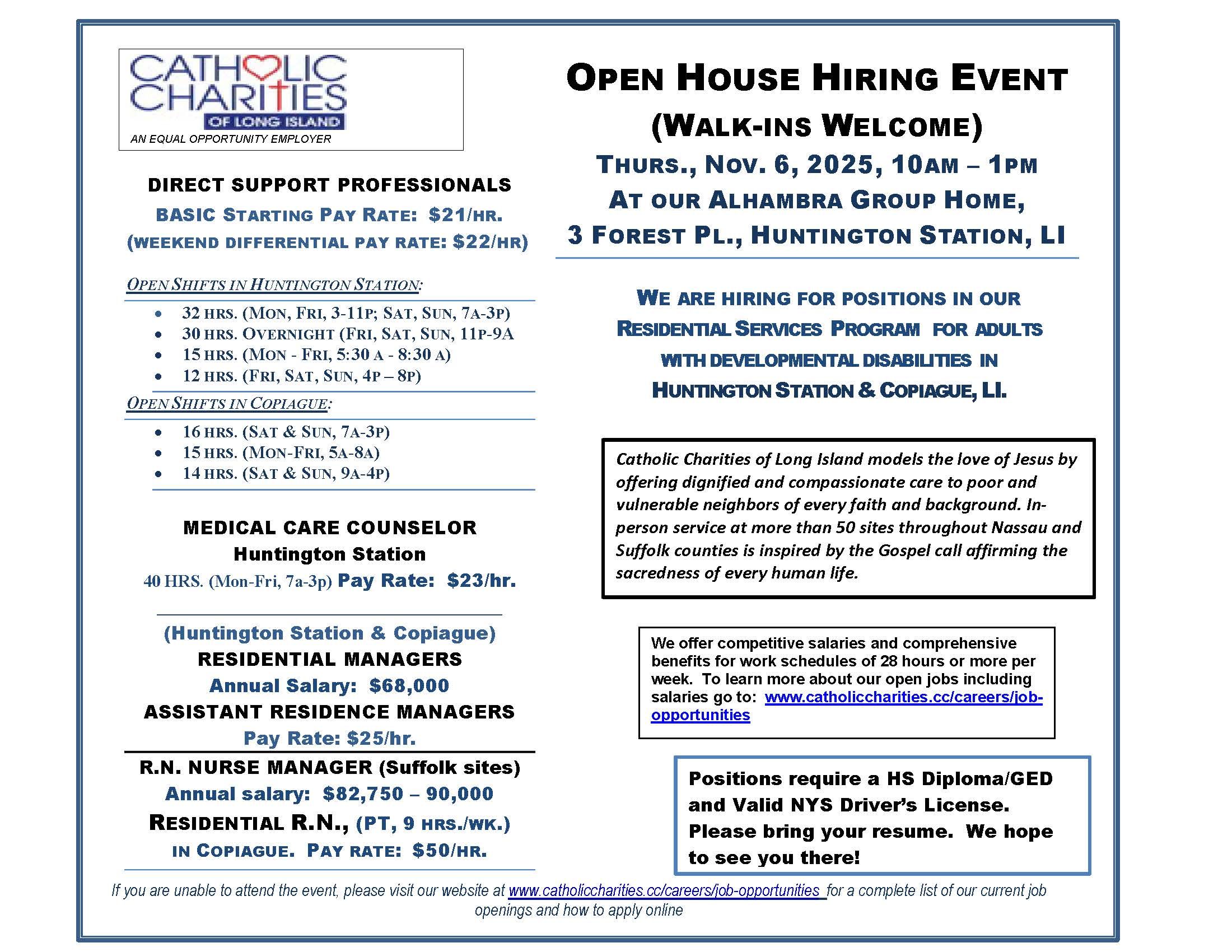 Catholic Charities of LI will be participating at this event to showcase agency job opportunities.