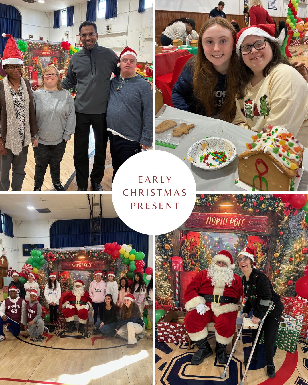 The gymnasium at St. Ignatius Loyola Parish in Hicksville was dressed for Christmas as colorful blow-up characters lined up next to finely wrapped presents and balloon art figures. A chair at the center was reserved for Santa Claus, who called out “Merry Christmas, everyone” and presented gift boxes to 25 adults with developmental disabilities from four of our Catholic Charities of Long Island group residences.
